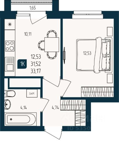 Однокомнатная квартира от застройщика с предчистовой отделкой в ЖК "Беринг" на 9 этаже. Общая площадь: 38.45 кв.м., жилая: 10.59 кв.м., площадь просторной кухни-столовой: 14.18 кв.м. Все окна выходят на одну сторону. В квартире одна лоджия, один совмещенный санузел. Высота потолков 2.75 м.
