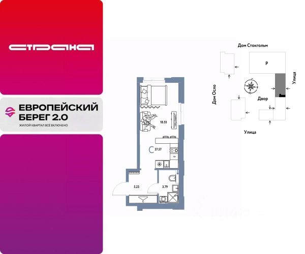 Продается студия в ЖК "Европейский берег" 2.0.