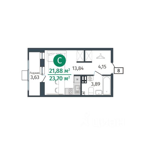 Просторная однокомнатная квартира с предчистовой отделкой в ЖК "Мотивы" на 12 этаже. Общая площадь: 37.45 кв.м., жилая: 12.01 кв.м., площадь просторной кухни-столовой: 15.83 кв.м. Все окна выходят на одну сторону. В квартире одна лоджия, один совмещенный санузел. Высота потолков 2.7 м.