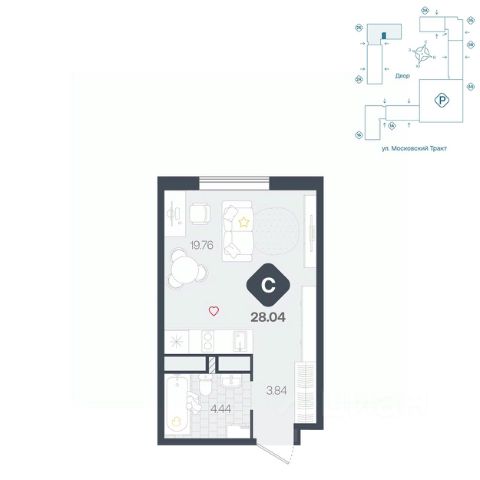 Продаётся квартира площадью 24.30 м2 в жилом комплексе "Айрис". Квартира находится на 2 этаже, жилая площадь квартиры 9.50 м2, площадь кухни-ниши — 5.80 м2 Срок сдачи — III кв. 2027 Жилой комплекс "Айрис" — это: - фиджитал-квартал в Тюмени - дома высотой от 7 до 25 этажей - квартиры с системой "Умный дом" - цифровые технологии как элемент благоустройства Окружение В нескольких минутах ходьбы от дома — парк "Комарово" с волейбольной площадкой, открытым кинотеатром, зонами для барбекю и катком. Неподалеку от Airis находится центр иппотерапии, где можно покататься на лошадях и взять уроки верховой езды. На территории Airis появится собственный парк с прогулочными аллеями. Инфраструктура В 5-10 минутах от квартала открыты 2 детских сада и гимназия. На шопинг можно отправиться в торговые комплексы "Колумб" и "Кристалл" — они находятся недалеко от дома. Благоустройство Уютный двор — приватное пространство для жителей. В беседках можно будет почитать книгу в тишине, а в тени деревьев устроиться на пикник. На крыше многоуровневого паркинга будет лаунж-зона с кинотеатром, баскетбольная площадка и воркаут-пространство, где можно позаниматься с виртуальным тренером — достаточно отсканировать код. Лобби Интерьеры лобби выполнены в пастельных тонах с элементами фиджитал-решений. Для отдыха и ожидания гостей создана лаунж-зона. Также есть гостевые санузлы. Колясочные Возвращайтесь налегке после прогулки с малышом — оставить коляску можно в специальном помещении на первом этаже. Кладовые Для сезонных и габаритных вещей предусмотрены отдельные кладовые на цокольном этаже. В каждом помещении уже проведено электричество и выполнена стяжка пола. Паркинг На территории — два многоуровневых наземных паркинга. Один из них примыкает к домам — из него можно напрямую пройти в парадные. Планировки Планировки квартала — от компактной студии до сити-хауса с собственным палисадником — соответствуют любым жизненным сценариям. Можно выбрать квартиры с террасами и готовыми дизайнерскими интерьерами. Квартира с отделкой в Тюмени.