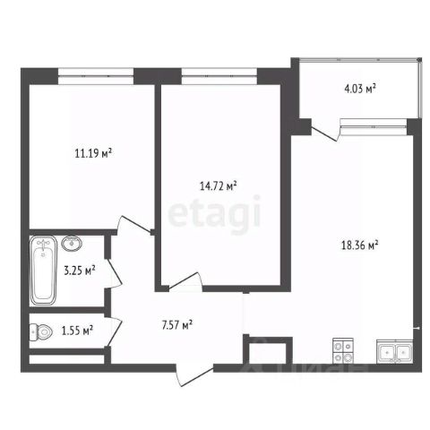 Планировка: Просторная кухня 14 м², которую можно оформить как кухню-гостиную, лоджия.