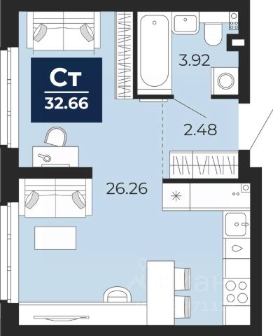 Успейте забронировать, пока действует скидка, предложение ограничено! Стоимость квартиры указана со скидкой, ваша экономия составит 255,196 руб. Информация по телефону, наши менеджеры вам все расскажут. 1-комн. квартира-студия от застройщика с предчистовой отделкой в ЖК "Беринг" на 1 этаже. Общая площадь: 32.66 кв.м., площадь гостиной 26.26 кв.м., из которых 5 кв.м. выделено под кухонную зону. Все окна выходят на одну сторону. В квартире один совмещенный санузел. Высота потолков 2.75 м. Дом монолитный, многоподъездный, переменной этажности, от 9 до 22 этажей. Квартира находится в 73.2-й секции высотой 22 этажа в корпусе ГП-73. На этаже 7 квартир. В подъезде 1 пассажирский и 1 грузовой лифт. Окончание строительства - 1 квартал 2026 года. Оформление сделки по договору долевого участия. Подобно знаменитому исследователю, мы чувствуем себя первооткрывателями этой локации. Хотим показать новую суть места, сформировать для вас жизненный опыт, которого ещё не было. Беринг — район зелёного цвета. Беринг — район, который откроется вам с другой стороны. Впечатлит новым уровнем комфорта и качеством жизни. Беринг — открытие на карте города. Первый квартал расположен в районе Тура, в границах улиц: Камчатская Западносибирская Энтузиастов. Вокруг уже есть всё для того, чтобы ежедневная рутина была лишь частью жизни и не доставляла дискомфорта. Школы и детские сады, магазины и аптеки, поликлиника, места для семейного отдыха, пеших и велопрогулок, и даже рыбалки. Масштабное озеленение дворов — визитная карточка ЭНКО и ваш оазис спокойствия, чтобы отвлечься от повседневности. Раскидистые деревья, кустарники, травы и цветы — осталось остановиться, вдохнуть и расслабиться, глядя на эту природную красоту. Стилистика подъездов продолжает концепцию Беринга, вдохновлённого Камчаткой: сдержанный, но при этом впечатляющий дизайн соседствует с удобством и функциональностью. #2uS5iE