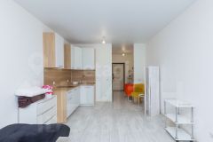Студия в ЖК "Крылья". Адрес: г. Тюмень, с. Горьковка, ул. Светлая 10к1, этаж 1, номер помещения 51 Площадь квартиры 26.51 м2 . Высота потолка 2,7 м. Описание квартиры: Просторная кухня-гостиная зонирована под приготовление пищи, рабочее место и зону отдых. Большая ванная комната 4,01 м². Ниша под шкафов для хранения сезонных вещей.