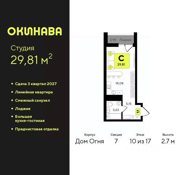 Квартира в счёт первоначального взноса по программе обмена. Информация по телефону, мы вам все подробно расскажем! Просторная однокомнатная студия с предчистовой отделкой в ЖК "Зарека" на 10 этаже. Общая площадь: 32.72 кв.м., площадь гостиной 19.6 кв.м., из которых 5 кв.м. выделено под кухонную зону. Все окна выходят на одну сторону. В квартире один балкон, один совмещенный санузел. Высота потолков 2.7 м. Квартира находится в корпусе 5-1. Дом монолитный, одноподъездный, высотой 25 этажей. На этаже 12 квартир. В подъезде 2 пассажирских и 1 грузовой лифт. Окончание строительства - 1 квартал 2027 года. Оформление сделки по договору долевого участия. Студия в жилом районе "Зарека". Особенности планировки: гардеробная, предчистовая отделка, балкон. квартиры в нашей базе: ЗРК05.1-Ж1.10.9. Проект На планировочную структуру "Зареки" повлияла близость к автомобильному мосту Челюскинцев. Мы расположили жилые здания так, чтобы они постепенно удалялись от проезжей части. Приём напоминает лесенку: чем сильнее мост возвышается над участком застройки, тем дальше по отношению к нему стоят дома. Этот ступенчатый сдвиг позволил нам сформировать буфер между кварталами и оживлённой магистралью. Мы намерены высадить здесь высокие деревья и создать дополнительную защиту от дорожных шума и пыли. В границах нашего участка мы намерены разместить школу и два встроенных детских сада на 135 и 150 мест. Общественные пространства С севера на юг территорию будет пронизывать пешеходный бульвар. Мы мыслим это общественное пространство как главный центр притяжения. На нём будут сосредоточены основные детские игровые и спортивные зоны, места для встреч и спокойного отдыха. Он также сыграет роль мостика, ведущего к другим нашим проектам — "Европейскому кварталу" и "Дому у озера". Одна из базовых идей мастер-плана касается береговой линии. Сегодня озеленение этой территории носит стихииныи характер, а прямому доступу к Туре препятствует дамба. Мы хотим благоустроить пространства у воды и открыть их для людей. Архитекторы спроектировали систему многоярусных троп и спусков к реке, смотровые площадки и места для активного отдыха и пикников. #Zs80sz