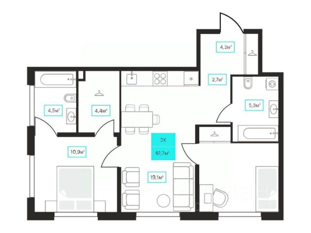 Продаётся 2-комнатная квартира в строящемся доме (Дом 6к1), срок сдачи: III-кв. 2026, общей площадью 61.7 кв.м., на 3 этаже. Новый жилой комплекс "Futuro" от застройщика "newton" расположен в г. Тюмень на Ставропольской улице.