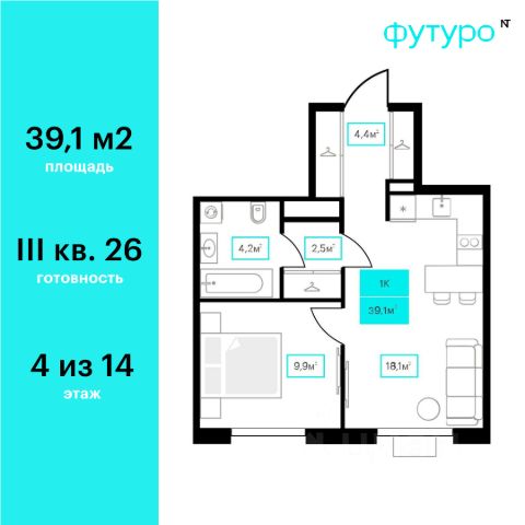 Продаётся 1-комнатная квартира в строящемся доме (Дом 6к2), срок сдачи: III-кв. 2026, общей площадью 39.1 кв.м., на 4 этаже. Новый жилой комплекс "Futuro" от застройщика "newton" расположен в г. Тюмень на Ставропольской улице.