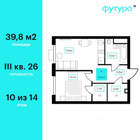 Продаётся 1-комнатная квартира в строящемся доме (Дом 6к2), срок сдачи: III-кв. 2026, общей площадью 39.8 кв.м., на 10 этаже. Новый жилой комплекс "Futuro" от застройщика "newton" расположен в г. Тюмень на Ставропольской улице.