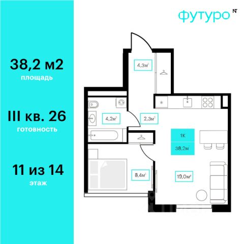 Продаётся 1-комнатная квартира в строящемся доме (Дом 6к2), срок сдачи: III-кв. 2026, общей площадью 38.2 кв.м., на 11 этаже. Новый жилой комплекс "Futuro" от застройщика "newton" расположен в г. Тюмень на Ставропольской улице.