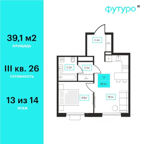 Продаётся 1-комнатная квартира в строящемся доме (Дом 6к2), срок сдачи: III-кв. 2026, общей площадью 39.1 кв.м., на 13 этаже. Новый жилой комплекс "Futuro" от застройщика "newton" расположен в г. Тюмень на Ставропольской улице.