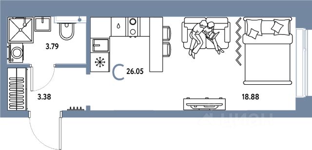 Студия в Октябрьском на Туре. Особенности планировки: предчистовая отделка, тёплая лоджия. квартиры в нашей базе: ОКТ-08-6-6.10.6. Район Проект расположен на берегу реки, в одном из самых живописных и экологичных районов Тюмени. За последние годы облик района изменился. По соседству с индивидуальной застройкой выросли многоквартирные дома. При проектировании "Октябрьского на Туре" нашей приоритетной задачей стало сохранение природного ландшафта: мы постарались деликатно вписать в него современную архитектуру. Квартал удачно расположен с точки зрения дорожной инфраструктуры. На автомобиле путь до центра города составит 15 минут. Добраться до набережной и главных тюменских достопримечательностей можно и на общественном транспорте. В пешей доступности находится автобусная остановка. Проект По мастер-плану здесь будет восемь домов. Ядро застройки составляют замкнутые кварталы переменной этажности. Их высотность понижается по мере приближения к реке. На углах участка мы разместили башни-доминанты. Одной из достопримечательностей квартала станет парк на Туре — здесь появится зеленая зона протяженностью около 6 километров для пеших и велопрогулок. Смысловая ось квартала — широкая главная улица с высаженными вдоль неё высокими деревьями. Они создают тень и работают как шумо- и пылезащитные экраны. Это место сосредоточения основных пешеходных и транспортных потоков, на сторону которых мы ориентировали большинство коммерческих помещений. Отсюда жители могут свернуть на тихие соседские улицы и попасть на внутриквартальную площадь — ещё одну точку притяжения. #Z4zgec
