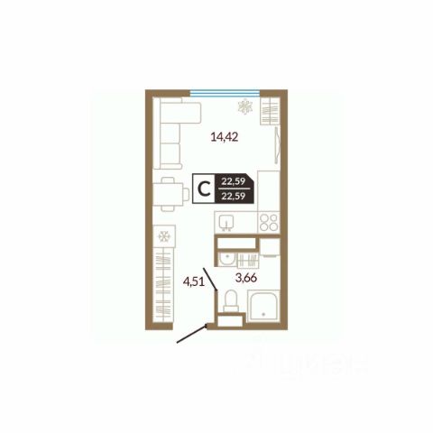 Вид с окна на центральную площадь, прогулочный бульвар, школу, детский сад (стрелкой на картинке указано). По стояку данная планировка из формата 1+ была представлена застройщиком только на 2 и 3 этажах в секции А. В секции В и С вид с окна данного формата квартиры дом в дом!