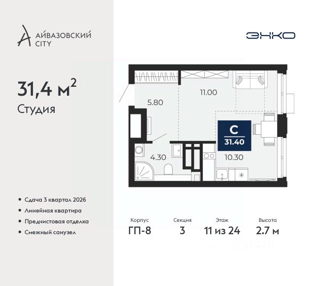 Дом монолитный, многоподъездный, переменной этажности, от 7 до 11 этажей. Квартира находится в 4-й секции высотой 8 этажей в корпусе 2. На этаже 6 квартир. В подъезде 1 пассажирский и 1 грузовой лифт. Окончание строительства - 1 квартал 2027 года. Оформление сделки по договору долевого участия.