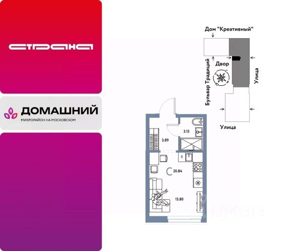 Новая квартира в ЖК "Домашний" напрямую от федеральной группы компаний "Страна Девелопмент". Финансовый партнер — банк "ДОМ.РФ". Продается 1комнатная квартира на 10 этаже от застройщика Страна Девелопмент. Площадь квартиры 20,84 кв. м. ЖК "ДОМАШНИЙ" Жилой комплекс "Домашний" это первый цифровой район в Сибири, где жители заходят в парадные по Face ID, автомобили заезжают в паркинг по сканированию номера, а лифт автоматически спускается на первый этаж при открытии домофона. Даже во дворах — USB-розетки и беседки с подогревом. ПРЕИМУЩЕСТВА -Школа, зеленый сквер и пешеходный бульвар прямо внутри квартала -Закрытые дворы у каждого дома для активного и спокойного отдыха -Охрана, видеонаблюдение 24/7 и доступ к камерам в мобильном приложении -Сквозные парадные с прозрачными входными группами, колясочными и велосипедными -Паркинг с въездом по считыванию номеров, системой контроля выбросов CO2, тележками для покупок и велопарковкой -Торговая галерея на первом этаже дома ОТДЕЛКА Квартиры сдаются с предчистовой отделкой: произведена разводка электричества и отопления, выполнена стяжка пола, стены выровнены "под маяк", установлены розетки, выключатели и радиаторы. ДИЗАЙНЕРСКАЯ ОТДЕЛКА При покупке квартиры в ЖК "Домашний" можно включить стоимость ремонта в ипотеку. Пять вариантов на выбор: Хлопковая нить, Серый шторм, Белый камень, Шалфей, Голубой вереск. СПОСОБЫ ПОКУПКИ Сотрудники "Страна Девелопмент" будут сопровождать вас на каждом этапе сделки, помогут получить одобрение по ипотеке или снизить ежемесячный платеж. - ипотека - материнский капитал -100% оплата наличными