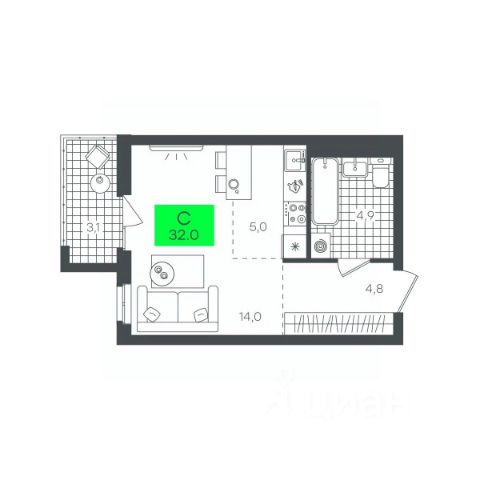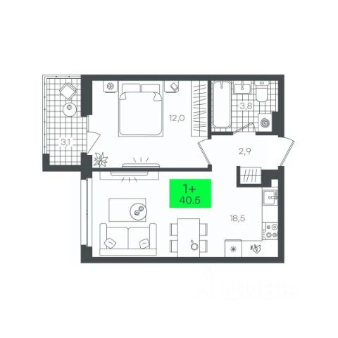 • ✅ Минимальная площадь: 19,7 м²