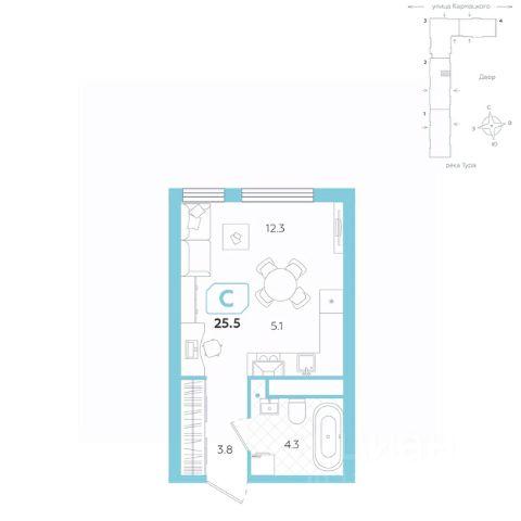 Продается однокомнатная квартира-студия с предчистовой отделкой в ЖК "Прео" на 10 этаже. Общая площадь: 34.51 кв.м., площадь гостиной 23.97 кв.м., из которых 5 кв.м. выделено под кухонную зону. Все окна выходят на одну сторону. В квартире один балкон, один совмещенный санузел. Высота потолков 2.7 м.