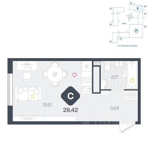Продаётся квартира площадью 24.7 м2 в жилом комплексе "Айрис". Квартира находится на 11 этаже, жилая площадь квартиры 9.6 м2, площадь кухни-ниши — 5.9 м2 Срок сдачи — III кв. 2027 Жилой комплекс "Айрис" — это: - фиджитал-квартал в Тюмени - дома высотой от 7 до 25 этажей - квартиры с системой "Умный дом" - цифровые технологии как элемент благоустройства Окружение В нескольких минутах ходьбы от дома — парк "Комарово" с волейбольной площадкой, открытым кинотеатром, зонами для барбекю и катком. Неподалеку от Airis находится центр иппотерапии, где можно покататься на лошадях и взять уроки верховой езды. На территории Airis появится собственный парк с прогулочными аллеями. Инфраструктура В 5-10 минутах от квартала открыты 2 детских сада и гимназия. На шопинг можно отправиться в торговые комплексы "Колумб" и "Кристалл" — они находятся недалеко от дома. Благоустройство Уютный двор — приватное пространство для жителей. В беседках можно будет почитать книгу в тишине, а в тени деревьев устроиться на пикник. На крыше многоуровневого паркинга будет лаунж-зона с кинотеатром, баскетбольная площадка и воркаут-пространство, где можно позаниматься с виртуальным тренером — достаточно отсканировать код. Лобби Интерьеры лобби выполнены в пастельных тонах с элементами фиджитал-решений. Для отдыха и ожидания гостей создана лаунж-зона. Также есть гостевые санузлы. Колясочные Возвращайтесь налегке после прогулки с малышом — оставить коляску можно в специальном помещении на первом этаже. Кладовые Для сезонных и габаритных вещей предусмотрены отдельные кладовые на цокольном этаже. В каждом помещении уже проведено электричество и выполнена стяжка пола. Паркинг На территории — два многоуровневых наземных паркинга. Один из них примыкает к домам — из него можно напрямую пройти в парадные. Планировки Планировки квартала — от компактной студии до сити-хауса с собственным палисадником — соответствуют любым жизненным сценариям. Можно выбрать квартиры с террасами и готовыми дизайнерскими интерьерами.