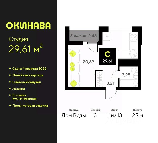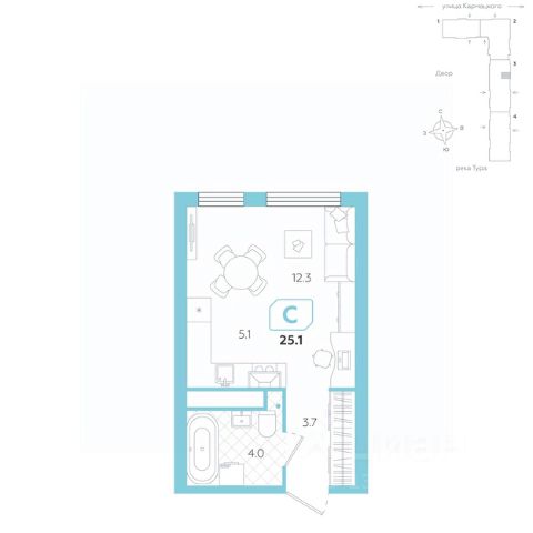 Квартира в счёт первоначального взноса по программе обмена. Информация по телефону, мы вам все подробно расскажем! Продается 1-комн. студия с предчистовой отделкой в ЖК "Зарека" на 11 этаже. Общая площадь: 32.72 кв.м., площадь гостиной 19.6 кв.м., из которых 5 кв.м. выделено под кухонную зону. Все окна выходят на одну сторону. В квартире один балкон, один совмещенный санузел. Высота потолков 2.7 м. Квартира находится в корпусе 5-1. Дом монолитный, одноподъездный, высотой 25 этажей. На этаже 12 квартир. В подъезде 2 пассажирских и 1 грузовой лифт. Окончание строительства - 1 квартал 2027 года. Оформление сделки по договору долевого участия. Продаётся с паркингом. Студия в жилом районе "Зарека". Особенности планировки: гардеробная, предчистовая отделка, балкон. квартиры в нашей базе: ЗРК05.1-Ж1.11.9. Проект На планировочную структуру "Зареки" повлияла близость к автомобильному мосту Челюскинцев. Мы расположили жилые здания так, чтобы они постепенно удалялись от проезжей части. Приём напоминает лесенку: чем сильнее мост возвышается над участком застройки, тем дальше по отношению к нему стоят дома. Этот ступенчатый сдвиг позволил нам сформировать буфер между кварталами и оживлённой магистралью. Мы намерены высадить здесь высокие деревья и создать дополнительную защиту от дорожных шума и пыли. В границах нашего участка мы намерены разместить школу и два встроенных детских сада на 135 и 150 мест. Общественные пространства С севера на юг территорию будет пронизывать пешеходный бульвар. Мы мыслим это общественное пространство как главный центр притяжения. На нём будут сосредоточены основные детские игровые и спортивные зоны, места для встреч и спокойного отдыха. Он также сыграет роль мостика, ведущего к другим нашим проектам — "Европейскому кварталу" и "Дому у озера". Одна из базовых идей мастер-плана касается береговой линии. Сегодня озеленение этой территории носит стихииныи характер, а прямому доступу к Туре препятствует дамба. Мы хотим благоустроить пространства у воды и открыть их для людей. Архитекторы спроектировали систему многоярусных троп и спусков к реке, смотровые площадки и места для активного отдыха и пикников. #zS8ote