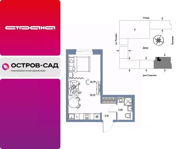 Новая квартира в ЖК "Остров-сад" напрямую от федеральной группы компаний "Страна Девелопмент". Финансовый партнер — Сбербанк России. Продается 1комнатная квартира на 11 этаже от застройщика Страна Девелопмент. Площадь квартиры 25,58 кв. м. ЖК "ОСТРОВ-САД" Жилой комплекс ЖК "Остров-сад" — новый квартал в районе ДОК в Тюмени недалеко от центра. Внутри ЖК планируется несколько школ и детсадов, торговая галерея, своя набережная, закрытые дворы-сады, несколько подземных и многоуровневых паркингов и пешеходный бульвар. Архитектура комплекса отсылает к истории ДОКа — отделка из красного кирпича, акцентные цвета штукатурки и необычная ступенчатая форма зданий. Всё для комфортной жизни на своём "острове" рядом с центром Тюмени. ПРЕИМУЩЕСТВА Квартиры с готовым ремонтом, возможность приобрести квартиру с кухонным гарнитуром и техникой. Развитое жилое пространство — закрытые дворы-сады, свои набережная и бульвар, торговая галерея на 1-м этаже, рядом детсады, школы и поликлиника. Служба охраны и видеонаблюдение в доме и во дворе 24/7. Несколько многоуровневых и подземных паркингов с охраной. ОТДЕЛКА Необходимые работы уже выполнены: подведены холодная, горячая вода и электричество, установлены батареи. В квартире не проводились отделочные работы: не выровнены стены и пол. ДИЗАЙНЕРСКАЯ ОТДЕЛКА В ЖК "Остров-сад" есть квартиры с готовым ремонтом. Пять вариантов на выбор в разных цветовых решениях. В ремонт также включены светильники, межкомнатные двери и даже кондиционер. Можно выбрать отдельно ремонт в ванной, для вас 4 стильных варианта с сантехникой. СПОСОБЫ ПОКУПКИ Сотрудники "Страна Девелопмент" будут сопровождать вас на каждом этапе сделки, помогут получить одобрение по ипотеке или снизить ежемесячный платеж. - ипотека - материнский капитал - 100% оплата наличными