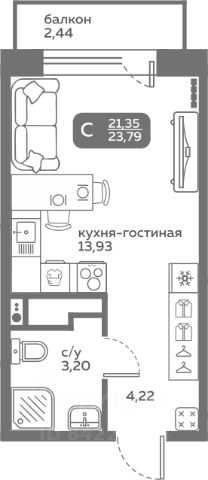 При покупке этой квартиры за наличный расчет предоставляется скидка 5% Прямая продажа от застройщика! Продается студия в строящемся ЖК "Меридиан Слобода", срок сдачи: I-кв. 2027, общей площадью 19.66 м², на 11 этаже из 21. Площадь кухни — 12.79 м². "Меридиан Слобода" расположен в южной части (зеленой зоне) Тюменской Слободы рядом со строящимся Комарово парком в границах улиц Заполярная и Спасская. В районе расположены все необходимые объекты социальной инфраструктуры. ЖК "Меридиан Слобода" состоит из двух домов переменной этажности от 15 до 20 с отделкой фасадов разной фактуры. Главная особенность ЖК — свой собственный хвойный сквер прямо во дворе. Территория сквера будет оформлена в минималистичном стиле, главное правило которого сохранение экосистемы и гармоничное встраивание объектов инфраструктуры в природную среду. Здесь будут дорожки из деревянных настилов, зоны отдыха, отель для птиц. Квартиры сдаются с предчистовой отделкой или с ремонтом. О возможности приобретения квартиры с ремонтом уточняйте у менеджеров отдела продаж. Преимущества ЖК: — тёплый тамбур с домофоном на второй двери — дизайнерское оформление подъездов — колясочная и парковка для велосипедов — лапомойка — кладовые на цокольном этаже со входом через подъезд — закрытый двор — зоны для игр и спорта во дворе
