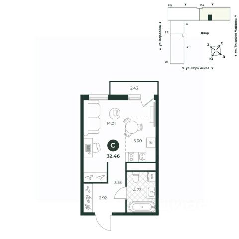 Строим кварталы для жизни с заботой о будущем. Предлагается студия комфорт-класса площадью 26.2 кв.м в корпусе 1.1КВ на 23-м этаже, в жилом комплексе "Чаркова 72". Выбирайте свое место для счастливой жизни: от уютной студии до просторной 3-комнатной квартиры. Хотите погрузиться в творческий процесс ремонта? Присмотритесь к вариантам предчистовой отделки. Если хотите сразу отпраздновать новоселье, поручите нам работы по отделке. Мы установим двери, окна и сантехнику, положим ламинат и плитку. На стенах будут обои, которые можно перекрашивать до 8 раз. Приобрести квартиры возможно по специальным акциям от застройщика, с текущими условиями акций можно ознакомиться в блоке "Акций". Цена динамическая и может отличаться, уточняйте актуальность у застройщика. Идеальное сочетание городского комфорта и размеренной жизни — квартал "Чаркова 72" на северо-востоке города. В дизайне 1724-этажных домов с панорамными балконами нашли отражение нотки сибирской природы. От "Чаркова 72" удобно добираться до центра города — всего 17 минут пути. А в 2 минутах от дома находится Тобольский тракт. Для семейного отдыха отлично подойдет парк Гагарина — он находится в 7 минутах от квартала. В закрытых дворах тихо и уютно — все авто остались на одном из 4 многоуровневых паркингов, которые находятся за территорией квартала. Можно спокойно гулять по бульвару и заниматься йогой на спортивной площадке. На первых этажах домов — кафе и магазины. Рядом с проектом — детские сады и школы, городская поликлиника и МФЦ. Во всех квартирах есть выводы под кондиционеры, на подземных этажах — индивидуальные кладовые, на первых — места для хранения велосипедов и колясок. В квартирах можно выбрать варианты отделки: чистовая, черновая и улучшенная из материалов повышенного класса.