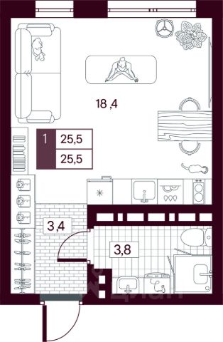 Продаётся квартира площадью 50.78 м2 в жилом комплексе "Дабл-Дабл". Квартира находится на 3 этаже, жилая площадь квартиры м2, площадь просторной кухни — м2. Среди особенностей планировки — изолированные комнаты с окнами на одну сторону, 1 совмещённый санузел.
