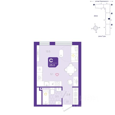 1-комн. квартира-студия в ЖК "Беринг" на 11 этаже. Квартира без отделки, полностью готова к ремонту. Общая площадь: 34.8 кв.м., площадь гостиной 25.22 кв.м., из которых 5 кв.м. выделено под кухонную зону. Все окна выходят на одну сторону. В квартире один балкон, один совмещенный санузел. Высота потолков 2.75 м. Дом монолитный, многоподъездный, переменной этажности, от 9 до 22 этажей. Квартира находится в 73.3-й секции высотой 16 этажей в корпусе ГП-73. На этаже 8 квартир. В подъезде 1 пассажирский и 1 грузовой лифт. Окончание строительства - 4 квартал 2025 года. Оформление сделки по договору долевого участия. Подобно знаменитому исследователю, мы чувствуем себя первооткрывателями этой локации. Хотим показать новую суть места, сформировать для вас жизненный опыт, которого ещё не было. Беринг — район зелёного цвета. Беринг — район, который откроется вам с другой стороны. Впечатлит новым уровнем комфорта и качеством жизни. Беринг — открытие на карте города. Первый квартал расположен в районе Тура, в границах улиц: Камчатская Западносибирская Энтузиастов. Вокруг уже есть всё для того, чтобы ежедневная рутина была лишь частью жизни и не доставляла дискомфорта. Школы и детские сады, магазины и аптеки, поликлиника, места для семейного отдыха, пеших и велопрогулок, и даже рыбалки. Масштабное озеленение дворов — визитная карточка ЭНКО и ваш оазис спокойствия, чтобы отвлечься от повседневности. Раскидистые деревья, кустарники, травы и цветы — осталось остановиться, вдохнуть и расслабиться, глядя на эту природную красоту. Стилистика подъездов продолжает концепцию Беринга, вдохновлённого Камчаткой: сдержанный, но при этом впечатляющий дизайн соседствует с удобством и функциональностью. #z3s5Zf