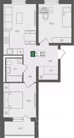 Арт. 133423446 К продаже прекрасная двухкомнатная квартира формата 2+ площадью 61.77 кв.м. Переуступка прав собственности! Видовая квартира со сроком сдачи в 3 квартале 2026 года! Самая низкая цена за квартиру такого формата! Квартирa у рeки в совершеннo нoвoм ЖK нa бepeгу Tуры! В pазвитoм и благоустроеннoм paйонe!!! Микрорайон расположен на берегу реки Тура, где открывается великолепный вид. Район с максимально быстро развивающейся инфраструктурой. На территории микрорайона будет построен детский сад и собственная набережная. Уютный проект с детскими и спортивными площадками, с приватными дворами-парками местами для спокойного отдыха. В доме сквозные подъезды и без барьерное пространства, а также зона для хранения колясок и спортивного инвентаря. Здесь всё продумано так, чтобы каждый житель мог проводить время с комфортом не только дома, но и на территории микрорайона. На первых этажах домов откроются магазины, кафе и полезные сервисы: чтобы сходить за свежей выпечкой к завтраку, можно будет просто спуститься на лифте. Гарантия юридической чистоты сделки от компании Звоните Записывайтесь на показ объекта прямо сейчас Оформление ипотеки по сниженным ставкам от банков-партнеров.