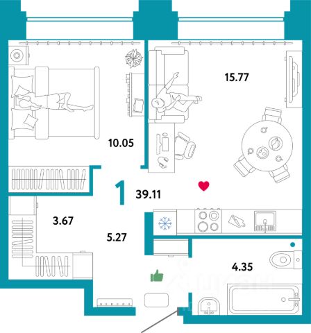 Продаётся квартира площадью 38.57 м2 в жилом комплексе "Смородина". Квартира находится на 3 этаже, жилая площадь квартиры 11.56 м2, площадь просторной кухни — м2. Среди особенностей планировки — изолированные комнаты с окнами на одну сторону, 1 совмещённый санузел. Срок сдачи — IV кв. 2026 Жилой комплекс "Смородина" — это: - уютный малоэтажный комплекс в районе ММС - дома высотой 4 этажа - квартиры от студий до семейных вариантов с отапливаемыми лоджиями - экологичные материалы в благоустройстве территории Окружение В 5 минутах ходьбы от проекта — озеро Липовое с песчаным пляжем и лесопарковая зона. Инфраструктура В шаговой доступности есть все для комфортной жизни: школы, детские сады, магазины и аптеки. Рядом с проектом — остановка общественного транспорта. Благоустройство Прямо во дворе — собственные грядки для жителей, где можно выращивать зелень и цветы. Для детей оборудованы детские площадки из натуральных материалов. Лобби Вдохновленные современными тенденциями наши парадные разработаны с акцентом на эстетическую привлекательность и практичность. Использование натуральных материалов и ярких цветовых акцентов создает атмосферу уюта и стиля. Планировки Среди многообразия продуманных планировок есть и уютные студии, и просторные семейные варианты. Во всех квартирах предусмотрены отапливаемые лоджии, где можно устроить зону отдыха или рабочий кабинет.