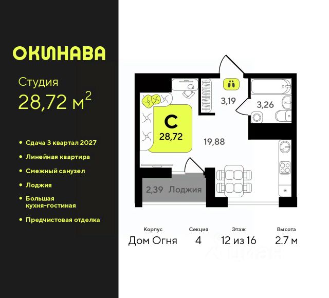 Квартира в счёт первоначального взноса по программе обмена. Звоните, мы вам все подробно расскажем! Продается 1-комн. студия с предчистовой отделкой в ЖК "Зарека" на 12 этаже. Общая площадь: 32.73 кв.м., площадь гостиной 19.7 кв.м., из которых 5 кв.м. выделено под кухонную зону. Все окна выходят на одну сторону. В квартире один балкон, один совмещенный санузел. Высота потолков 2.7 м. Квартира находится в корпусе 5-1. Дом монолитный, одноподъездный, высотой 25 этажей. На этаже 12 квартир. В подъезде 2 пассажирских и 1 грузовой лифт. Окончание строительства - 1 квартал 2027 года. Оформление сделки по договору долевого участия. Продаётся с паркингом. Студия в жилом районе "Зарека". Особенности планировки: гардеробная, предчистовая отделка, балкон. квартиры в нашей базе: ЗРК05.1-Ж1.12.10. Проект На планировочную структуру "Зареки" повлияла близость к автомобильному мосту Челюскинцев. Мы расположили жилые здания так, чтобы они постепенно удалялись от проезжей части. Приём напоминает лесенку: чем сильнее мост возвышается над участком застройки, тем дальше по отношению к нему стоят дома. Этот ступенчатый сдвиг позволил нам сформировать буфер между кварталами и оживлённой магистралью. Мы намерены высадить здесь высокие деревья и создать дополнительную защиту от дорожных шума и пыли. В границах нашего участка мы намерены разместить школу и два встроенных детских сада на 135 и 150 мест. Общественные пространства С севера на юг территорию будет пронизывать пешеходный бульвар. Мы мыслим это общественное пространство как главный центр притяжения. На нём будут сосредоточены основные детские игровые и спортивные зоны, места для встреч и спокойного отдыха. Он также сыграет роль мостика, ведущего к другим нашим проектам — "Европейскому кварталу" и "Дому у озера". Одна из базовых идей мастер-плана касается береговой линии. Сегодня озеленение этой территории носит стихииныи характер, а прямому доступу к Туре препятствует дамба. Мы хотим благоустроить пространства у воды и открыть их для людей. Архитекторы спроектировали систему многоярусных троп и спусков к реке, смотровые площадки и места для активного отдыха и пикников. #Z5cMV8