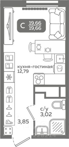 Продажа квартир-студий на 12 этаже в микрорайоне Комарово в городе Тюмень