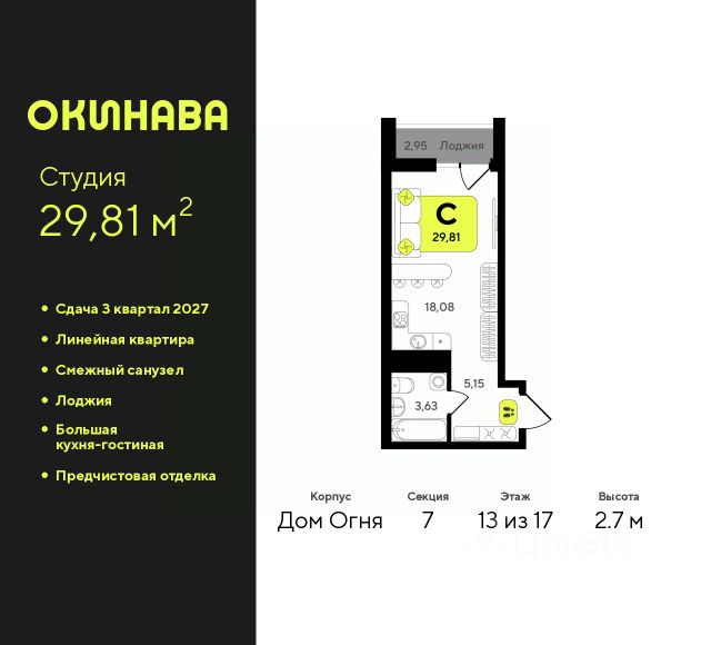 1-комн. студия с предчистовой отделкой в ЖК "Зарека" на 13 этаже. Общая площадь: 31.46 кв.м. Высота потолков 2.7 м. Квартира находится в корпусе 5-1. Дом монолитный, одноподъездный, высотой 25 этажей. На этаже 12 квартир. В подъезде 2 пассажирских и 1 грузовой лифт. Окончание строительства - 1 квартал 2027 года. Оформление сделки по договору долевого участия. Продаётся с паркингом. Студия в жилом районе "Зарека". Особенности планировки: предчистовая отделка, терраса на крыше. квартиры в нашей базе: ЗРК05.1-Ж1.13.8. Проект На планировочную структуру "Зареки" повлияла близость к автомобильному мосту Челюскинцев. Мы расположили жилые здания так, чтобы они постепенно удалялись от проезжей части. Приём напоминает лесенку: чем сильнее мост возвышается над участком застройки, тем дальше по отношению к нему стоят дома. Этот ступенчатый сдвиг позволил нам сформировать буфер между кварталами и оживлённой магистралью. Мы намерены высадить здесь высокие деревья и создать дополнительную защиту от дорожных шума и пыли. В границах нашего участка мы намерены разместить школу и два встроенных детских сада на 135 и 150 мест. Общественные пространства С севера на юг территорию будет пронизывать пешеходный бульвар. Мы мыслим это общественное пространство как главный центр притяжения. На нём будут сосредоточены основные детские игровые и спортивные зоны, места для встреч и спокойного отдыха. Он также сыграет роль мостика, ведущего к другим нашим проектам — "Европейскому кварталу" и "Дому у озера". Одна из базовых идей мастер-плана касается береговой линии. Сегодня озеленение этой территории носит стихииныи характер, а прямому доступу к Туре препятствует дамба. Мы хотим благоустроить пространства у воды и открыть их для людей. Архитекторы спроектировали систему многоярусных троп и спусков к реке, смотровые площадки и места для активного отдыха и пикников. #zMgu6f