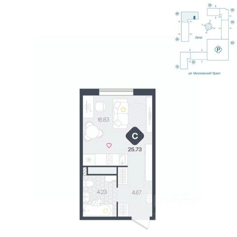 Продаётся квартира площадью 24.7 м2 в жилом комплексе "Айрис". Квартира находится на 13 этаже, жилая площадь квартиры 9.6 м2, площадь кухни-ниши — 5.9 м2 Срок сдачи — III кв. 2027 Жилой комплекс "Айрис" — это: - фиджитал-квартал в Тюмени - дома высотой от 7 до 25 этажей - квартиры с системой "Умный дом" - цифровые технологии как элемент благоустройства Окружение В нескольких минутах ходьбы от дома — парк "Комарово" с волейбольной площадкой, открытым кинотеатром, зонами для барбекю и катком. Неподалеку от Airis находится центр иппотерапии, где можно покататься на лошадях и взять уроки верховой езды. На территории Airis появится собственный парк с прогулочными аллеями. Инфраструктура В 5-10 минутах от квартала открыты 2 детских сада и гимназия. На шопинг можно отправиться в торговые комплексы "Колумб" и "Кристалл" — они находятся недалеко от дома. Благоустройство Уютный двор — приватное пространство для жителей. В беседках можно будет почитать книгу в тишине, а в тени деревьев устроиться на пикник. На крыше многоуровневого паркинга будет лаунж-зона с кинотеатром, баскетбольная площадка и воркаут-пространство, где можно позаниматься с виртуальным тренером — достаточно отсканировать код. Лобби Интерьеры лобби выполнены в пастельных тонах с элементами фиджитал-решений. Для отдыха и ожидания гостей создана лаунж-зона. Также есть гостевые санузлы. Колясочные Возвращайтесь налегке после прогулки с малышом — оставить коляску можно в специальном помещении на первом этаже. Кладовые Для сезонных и габаритных вещей предусмотрены отдельные кладовые на цокольном этаже. В каждом помещении уже проведено электричество и выполнена стяжка пола. Паркинг На территории — два многоуровневых наземных паркинга. Один из них примыкает к домам — из него можно напрямую пройти в парадные. Планировки Планировки квартала — от компактной студии до сити-хауса с собственным палисадником — соответствуют любым жизненным сценариям. Можно выбрать квартиры с террасами и готовыми дизайнерскими интерьерами.