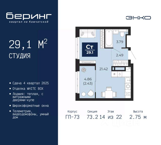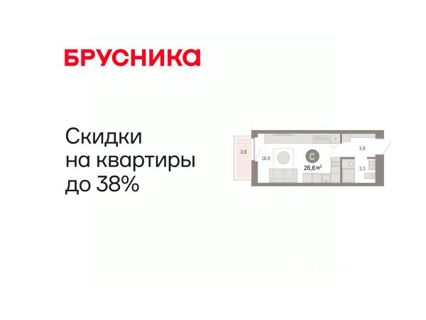 Квартира в счёт первоначального взноса по программе обмена. По всем вопросам обращайтесь в офис продаж, мы вам все подробно расскажем! Просторная 1-комн. студия с предчистовой отделкой в ЖК "Зарека" на 14 этаже. Общая площадь: 26.57 кв.м., площадь гостиной 16.9 кв.м., из которых 5 кв.м. выделено под кухонную зону. Все окна выходят на одну сторону. В квартире один балкон, один совмещенный санузел. Высота потолков 2.7 м. Дом монолитный, многоподъездный, переменной этажности, от 6 до 16 этажей. Квартира находится в 1-й секции высотой 16 этажей в корпусе 5-2. На этаже 8 квартир. В подъезде 1 пассажирский и 1 грузовой лифт. Окончание строительства - 4 квартал 2026 года. Оформление сделки по договору долевого участия. Студия в жилом районе "Зарека". Особенности планировки: предчистовая отделка, балкон. квартиры в нашей базе: ЗРК05.2-Ж1.14.5. Проект На планировочную структуру "Зареки" повлияла близость к автомобильному мосту Челюскинцев. Мы расположили жилые здания так, чтобы они постепенно удалялись от проезжей части. Приём напоминает лесенку: чем сильнее мост возвышается над участком застройки, тем дальше по отношению к нему стоят дома. Этот ступенчатый сдвиг позволил нам сформировать буфер между кварталами и оживлённой магистралью. Мы намерены высадить здесь высокие деревья и создать дополнительную защиту от дорожных шума и пыли. В границах нашего участка мы намерены разместить школу и два встроенных детских сада на 135 и 150 мест. Общественные пространства С севера на юг территорию будет пронизывать пешеходный бульвар. Мы мыслим это общественное пространство как главный центр притяжения. На нём будут сосредоточены основные детские игровые и спортивные зоны, места для встреч и спокойного отдыха. Он также сыграет роль мостика, ведущего к другим нашим проектам — "Европейскому кварталу" и "Дому у озера". Одна из базовых идей мастер-плана касается береговой линии. Сегодня озеленение этой территории носит стихииныи характер, а прямому доступу к Туре препятствует дамба. Мы хотим благоустроить пространства у воды и открыть их для людей. Архитекторы спроектировали систему многоярусных троп и спусков к реке, смотровые площадки и места для активного отдыха и пикников. #Zs9B99
