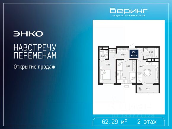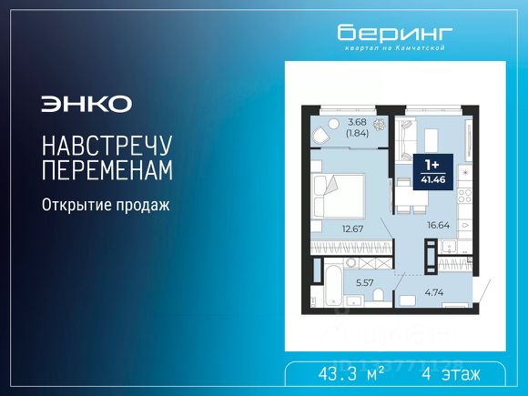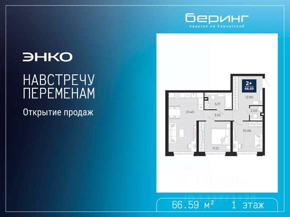 Успейте оформить бронирование по этой цене, предложение ограничено! Стоимость квартиры указана со скидкой, ваша экономия составит 519,930 руб. По всем вопросам обращайтесь в офис продаж, наши менеджеры вам все расскажут. Однокомнатная квартира-студия от застройщика с предчистовой отделкой в ЖК "Беринг" на 14 этаже. Общая площадь: 31.53 кв.м., площадь гостиной 20.39 кв.м., из которых 5 кв.м. выделено под кухонную зону. Все окна выходят на одну сторону. В квартире одна лоджия, один совмещенный санузел. Высота потолков 2.75 м. Дом монолитный, многоподъездный, переменной этажности, от 6 до 22 этажей. Квартира находится во 2-й секции высотой 22 этажа в корпусе ГП-73. На этаже 7 квартир. В подъезде 1 пассажирский и 1 грузовой лифт. На сегодняшний день строительство завершено, дом сдан в 1 квартале 2026 года. Оформление сделки по договору купли-продажи. Подобно знаменитому исследователю, мы чувствуем себя первооткрывателями этой локации. Хотим показать новую суть места, сформировать для вас жизненный опыт, которого ещё не было. Беринг — район зелёного цвета. Беринг — район, который откроется вам с другой стороны. Впечатлит новым уровнем комфорта и качеством жизни. Беринг — открытие на карте города. Первый квартал расположен в районе Тура, в границах улиц: Камчатская Западносибирская Энтузиастов. Вокруг уже есть всё для того, чтобы ежедневная рутина была лишь частью жизни и не доставляла дискомфорта. Школы и детские сады, магазины и аптеки, поликлиника, места для семейного отдыха, пеших и велопрогулок, и даже рыбалки. Масштабное озеленение дворов — визитная карточка ЭНКО и ваш оазис спокойствия, чтобы отвлечься от повседневности. Раскидистые деревья, кустарники, травы и цветы — осталось остановиться, вдохнуть и расслабиться, глядя на эту природную красоту. Стилистика подъездов продолжает концепцию Беринга, вдохновлённого Камчаткой: сдержанный, но при этом впечатляющий дизайн соседствует с удобством и функциональностью. #zmDDWz