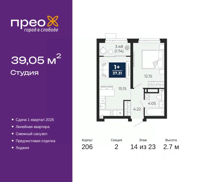 При покупке этой квартиры за наличный расчет предоставляется скидка 5% Прямая продажа от застройщика! Продается студия в строящемся ЖК "Меридиан Слобода", срок сдачи: I-кв. 2027, общей площадью 22.3 м², на 14 этаже из 20. Площадь кухни — 14.97 м². "Меридиан Слобода" расположен в южной части (зеленой зоне) Тюменской Слободы рядом со строящимся Комарово парком в границах улиц Заполярная и Спасская. В районе расположены все необходимые объекты социальной инфраструктуры. ЖК "Меридиан Слобода" состоит из двух домов переменной этажности от 15 до 20 с отделкой фасадов разной фактуры. Главная особенность ЖК — свой собственный хвойный сквер прямо во дворе. Территория сквера будет оформлена в минималистичном стиле, главное правило которого сохранение экосистемы и гармоничное встраивание объектов инфраструктуры в природную среду. Здесь будут дорожки из деревянных настилов, зоны отдыха, отель для птиц. Квартиры сдаются с предчистовой отделкой или с ремонтом. О возможности приобретения квартиры с ремонтом уточняйте у менеджеров отдела продаж. Преимущества ЖК: — тёплый тамбур с домофоном на второй двери — дизайнерское оформление подъездов — колясочная и парковка для велосипедов — лапомойка — кладовые на цокольном этаже со входом через подъезд — закрытый двор — зоны для игр и спорта во дворе Квартира продается с чистовой отделкой.