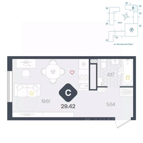 Продаётся квартира площадью 24.20 м2 в жилом комплексе "Айрис". Квартира находится на 14 этаже, жилая площадь квартиры 9.60 м2, площадь кухни-ниши — 5.70 м2 Срок сдачи — III кв. 2027 Жилой комплекс "Айрис" — это: - фиджитал-квартал в Тюмени - дома высотой от 7 до 25 этажей - квартиры с системой "Умный дом" - цифровые технологии как элемент благоустройства Окружение В нескольких минутах ходьбы от дома — парк "Комарово" с волейбольной площадкой, открытым кинотеатром, зонами для барбекю и катком. Неподалеку от Airis находится центр иппотерапии, где можно покататься на лошадях и взять уроки верховой езды. На территории Airis появится собственный парк с прогулочными аллеями. Инфраструктура В 5-10 минутах от квартала открыты 2 детских сада и гимназия. На шопинг можно отправиться в торговые комплексы "Колумб" и "Кристалл" — они находятся недалеко от дома. Благоустройство Уютный двор — приватное пространство для жителей. В беседках можно будет почитать книгу в тишине, а в тени деревьев устроиться на пикник. На крыше многоуровневого паркинга будет лаунж-зона с кинотеатром, баскетбольная площадка и воркаут-пространство, где можно позаниматься с виртуальным тренером — достаточно отсканировать код. Лобби Интерьеры лобби выполнены в пастельных тонах с элементами фиджитал-решений. Для отдыха и ожидания гостей создана лаунж-зона. Также есть гостевые санузлы. Колясочные Возвращайтесь налегке после прогулки с малышом — оставить коляску можно в специальном помещении на первом этаже. Кладовые Для сезонных и габаритных вещей предусмотрены отдельные кладовые на цокольном этаже. В каждом помещении уже проведено электричество и выполнена стяжка пола. Паркинг На территории — два многоуровневых наземных паркинга. Один из них примыкает к домам — из него можно напрямую пройти в парадные. Планировки Планировки квартала — от компактной студии до сити-хауса с собственным палисадником — соответствуют любым жизненным сценариям. Можно выбрать квартиры с террасами и готовыми дизайнерскими интерьерами.