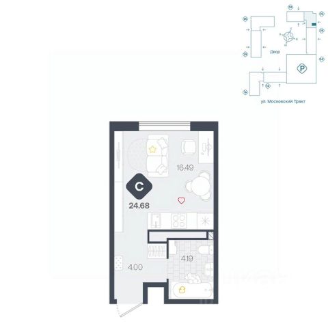 Продаётся квартира площадью 25.3 м2 в жилом комплексе "Айрис". Квартира находится на 14 этаже, жилая площадь квартиры 10.5 м2, площадь кухни-ниши — 5.7 м2 Срок сдачи — III кв. 2027 Жилой комплекс "Айрис" — это: - фиджитал-квартал в Тюмени - дома высотой от 7 до 25 этажей - квартиры с системой "Умный дом" - цифровые технологии как элемент благоустройства Окружение В нескольких минутах ходьбы от дома — парк "Комарово" с волейбольной площадкой, открытым кинотеатром, зонами для барбекю и катком. Неподалеку от Airis находится центр иппотерапии, где можно покататься на лошадях и взять уроки верховой езды. На территории Airis появится собственный парк с прогулочными аллеями. Инфраструктура В 5-10 минутах от квартала открыты 2 детских сада и гимназия. На шопинг можно отправиться в торговые комплексы "Колумб" и "Кристалл" — они находятся недалеко от дома. Благоустройство Уютный двор — приватное пространство для жителей. В беседках можно будет почитать книгу в тишине, а в тени деревьев устроиться на пикник. На крыше многоуровневого паркинга будет лаунж-зона с кинотеатром, баскетбольная площадка и воркаут-пространство, где можно позаниматься с виртуальным тренером — достаточно отсканировать код. Лобби Интерьеры лобби выполнены в пастельных тонах с элементами фиджитал-решений. Для отдыха и ожидания гостей создана лаунж-зона. Также есть гостевые санузлы. Колясочные Возвращайтесь налегке после прогулки с малышом — оставить коляску можно в специальном помещении на первом этаже. Кладовые Для сезонных и габаритных вещей предусмотрены отдельные кладовые на цокольном этаже. В каждом помещении уже проведено электричество и выполнена стяжка пола. Паркинг На территории — два многоуровневых наземных паркинга. Один из них примыкает к домам — из него можно напрямую пройти в парадные. Планировки Планировки квартала — от компактной студии до сити-хауса с собственным палисадником — соответствуют любым жизненным сценариям. Можно выбрать квартиры с террасами и готовыми дизайнерскими интерьерами.