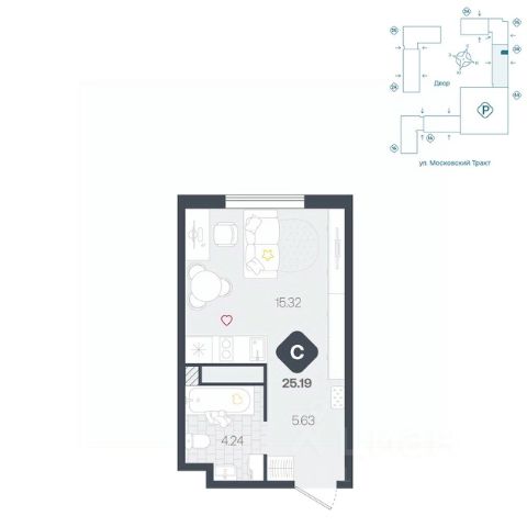 Продаётся квартира площадью 24.2 м2 в жилом комплексе "Айрис". Квартира находится на 14 этаже, жилая площадь квартиры 9.6 м2, площадь кухни-ниши — 5.7 м2 Срок сдачи — III кв. 2027 Жилой комплекс "Айрис" — это: - фиджитал-квартал в Тюмени - дома высотой от 7 до 25 этажей - квартиры с системой "Умный дом" - цифровые технологии как элемент благоустройства Окружение В нескольких минутах ходьбы от дома — парк "Комарово" с волейбольной площадкой, открытым кинотеатром, зонами для барбекю и катком. Неподалеку от Airis находится центр иппотерапии, где можно покататься на лошадях и взять уроки верховой езды. На территории Airis появится собственный парк с прогулочными аллеями. Инфраструктура В 5-10 минутах от квартала открыты 2 детских сада и гимназия. На шопинг можно отправиться в торговые комплексы "Колумб" и "Кристалл" — они находятся недалеко от дома. Благоустройство Уютный двор — приватное пространство для жителей. В беседках можно будет почитать книгу в тишине, а в тени деревьев устроиться на пикник. На крыше многоуровневого паркинга будет лаунж-зона с кинотеатром, баскетбольная площадка и воркаут-пространство, где можно позаниматься с виртуальным тренером — достаточно отсканировать код. Лобби Интерьеры лобби выполнены в пастельных тонах с элементами фиджитал-решений. Для отдыха и ожидания гостей создана лаунж-зона. Также есть гостевые санузлы. Колясочные Возвращайтесь налегке после прогулки с малышом — оставить коляску можно в специальном помещении на первом этаже. Кладовые Для сезонных и габаритных вещей предусмотрены отдельные кладовые на цокольном этаже. В каждом помещении уже проведено электричество и выполнена стяжка пола. Паркинг На территории — два многоуровневых наземных паркинга. Один из них примыкает к домам — из него можно напрямую пройти в парадные. Планировки Планировки квартала — от компактной студии до сити-хауса с собственным палисадником — соответствуют любым жизненным сценариям. Можно выбрать квартиры с террасами и готовыми дизайнерскими интерьерами.