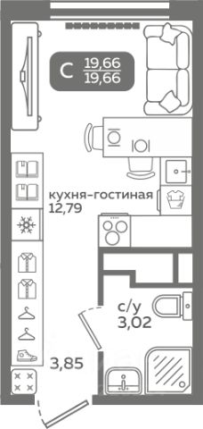 Продажа квартир-студий на 14 этаже в микрорайоне Комарово в городе Тюмень