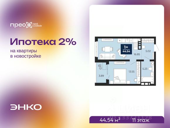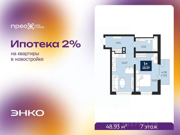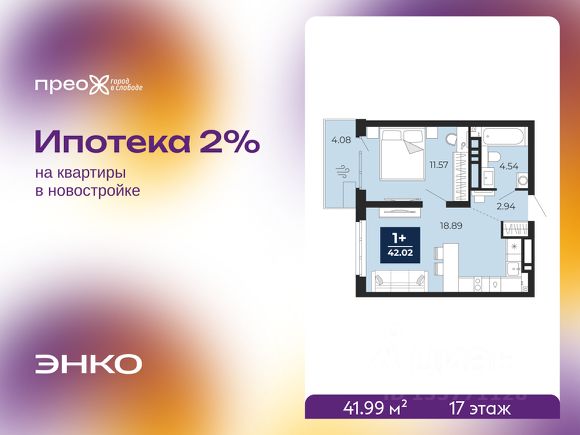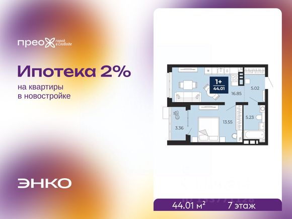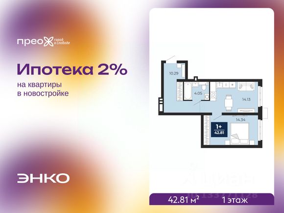 Однокомнатная квартира от застройщика с предчистовой отделкой в ЖК "Прео" на 2 этаже. Общая площадь: 45.68 кв.м., жилая: 15.41 кв.м., площадь просторной кухни-столовой: 14.98 кв.м. Все окна выходят на одну сторону. В квартире одна лоджия, один совмещенный санузел. Высота потолков 2.7 м.