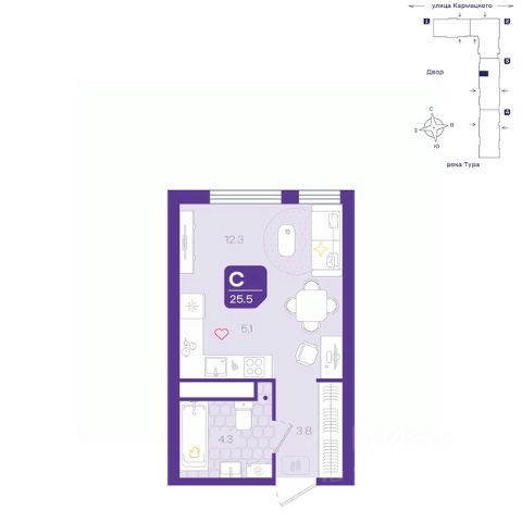 Продается 1-комн. квартира-студия от застройщика с предчистовой отделкой в ЖК "Айвазовский City" на 15 этаже. Общая площадь: 31.4 кв.м., площадь гостиной 21.3 кв.м., из которых 10.3 кв.м. выделено под кухонную зону. Все окна выходят на одну сторону. В квартире один совмещенный санузел. Высота потолков 2.7 м. Дом монолитный, многоподъездный, переменной этажности, от 14 до 24 этажей. Квартира находится в 3-й секции высотой 24 этажа в корпусе ГП-8. На этаже 7 квартир. В подъезде 1 пассажирский и 1 грузовой лифт. Окончание строительства - 3 квартал 2026 года. Оформление сделки по договору долевого участия. Новый жилой район располагается в живописном месте на берегу Туры в центральной части города. Принципиально новое пространство для жизни в центре современного города для тех, чьи мечты сбываются, кто нацелен на постоянный рост, перемены к лучшему для себя и своих близких. Каждая деталь Айвазовский City вдохновляет и заряжает на новые свершения: авторская архитектура, сбалансированная продуманная инфраструктура, дизайнерские дворы со спортивными и детскими площадками, парковые зоны с фонтанами, водный канал, украшающий центральный прогулочный маршрут района и многое другое. В 2019 года проект стал лауреатом престижной премии Urban Awards 2019 в номинации "Лучший строящийся региональный жилой комплекс бизнес-класса". Главная особенность Айвазовский City - соседство разных архитектурных школ в рамках одного дома. Изысканная классика, выразительная эклектика и оригинальный модерн - жить в одном из таких домов настоящий повод для гордости. Айвазовский City это идеальное сочетание комфорта, технологий и развитой инфраструктуры. Вход в подъезд возможен с улицы и со двора. Отправляясь на работу или за покупками, жители могут выйти с внешней стороны дома, а для прогулки с ребенком со стороны двора. Экологически чистые материалы и энергосберегающие технологии, качественное освещение общественных зон, видеонаблюдение по всей территории жилого района (в том числе в подъездах, лифтах и в подземном паркинге), закрытые дворы с доступом только для жителей Айвазовский City. Часть домов в Айвазовский City будут оснащены подземным паркингом. Востребованный в нашем климатическом поясе формат хранения автомобилей защитит собственность владельца в любое время года. Аккредитация в банках: ПАО Банк "ВТБ", ПАО "Газпромбанк", "Сбербанк России", ОАО "Альфа-Банк", ПАО Банк "ФК Открытие" и других. #2mZa5a