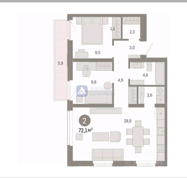 Идентификатор квартиры по базе застройщика: РСП-02-1-1. #zSmE4v