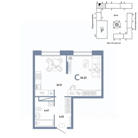 Объявление от застройщика Страна Девелопмент. Покупка квартиры защищена банком. Продается студия на 15 этаже от застройщика Страна Девелопмент. Площадь квартиры 34,23 кв. м. Юнион - проект двух застройщиков всероссийского масштаба: Страны Девелопмент и Группы Эталон. Мы объединили опыт и компетенции в девелопменте, создании экологичной среды, разработке ландшафтного дизайна, коммерческой инфраструктуры и продуманных планировок. Результатом синергии станет комфортное пространство для жизни, отдыха и восстановления. Рядом два парка с хвойными и смешанными лесами — "Затюменский" и "Плехановский бор". Летом можно устраивать пикники, а зимой кататься по лыжным трассам. ОТДЕЛКА Квартиры сдаются с предчистовой отделкой. Все грязные работы выполнены: произведена разводка электричества и отопления; выполнена стяжка пола; стены выровнены "под маяк". В квартире установлены розетки, выключатели и радиаторы. На входе — надежная стальная дверь. Вам остается только выбрать материалы и начать ремонт Доступна опция "Ремонт от застройщика". Стоимость можно включить в ипотеку. Вы можете заказать один из трех цветовых вариантов: светлый, натуральный или тёмный. КУХНЯ С ТЕХНИКОЙ Теперь дополнительно к ремонту можно заказать кухню со встроенной техникой. Эргономику и функциональное наполнение разработали под каждую планировку. ПОЛНАЯ МЕБЛИРОВКА Больше не нужно тратить время даже на подбор, доставку и сборку мебели.Вы можете включить в стоимость квартиры с ремонтом полную меблировку. Что входит в меблировку? - Кухня с техникой и сантехникой - Диван - Кровать - Шкаф в спальне - Шкаф в прихожей На консультации менеджер подскажет, какие акции действуют, и как получить одобрение по ипотеке с низкой ставкой. Более подробная информация по телефону. Застройщик ООО СЗ "Страна-Эталон". Проектные декларации на сайте наш.дом.рф.