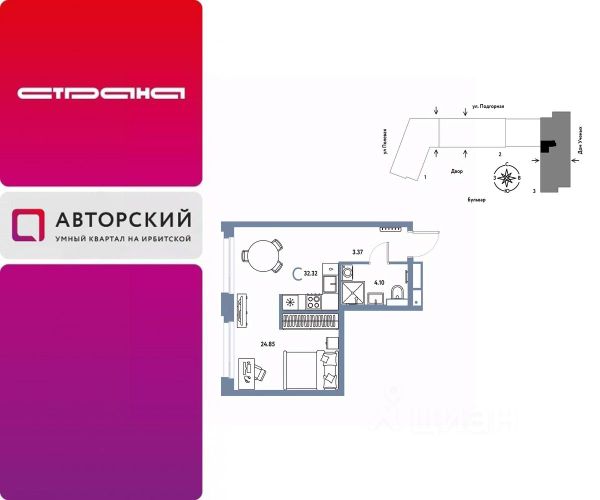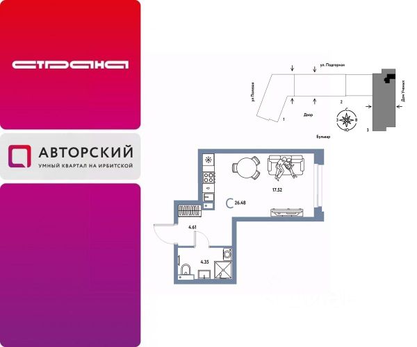 Новая квартира в ЖК "Авторский" напрямую от федерального застройщика "Страна Девелопмент". Продается студия на 15 этаже от застройщика Страна Девелопмент. Площадь квартиры 26,48 кв. м. Жилой комплекс "Авторский" — квартал для авторов своей жизни от федерального застройщика "Страна Девелопмент" вблизи исторического центра — до Моста Влюблённых 4 минуты на авто, а ещё рядом ведущие вузы Тюмени. ПРЕИМУЩЕСТВА - Тематический бульвар объединяет дома и закрытые дворы квартала в единую экосистему: зелень, перголы для отдыха, детские и спортивные площадки. По вечерам бульвар преображается: освещение создаёт уютную атмосферу. - Новый детский сад рядом, который появится в 2026 году прямо в одном из корпусов комплекса. В нём выделено 150 мест для малышей. - Во дворах нет машин, шума, выхлопных газов и посторонних людей. Всё пространство разделено на зоны по интересам и возрастам. Для детей — игровые площадки из эко-материалов и мягкая защита от падений. Для взрослых — зоны отдыха, воркаут-площадки и тропинки для неспешных прогулок. ОТДЕЛКА Квартиры сдаются с предчистовой отделкой: произведена разводка электричества и отопления, выполнена стяжка пола, стены выровнены "под маяк", установлены розетки, выключатели и радиаторы. ДИЗАЙНЕРСКАЯ ОТДЕЛКА При покупке квартиры в ЖК "Авторский" можно включить стоимость ремонта в ипотеку. Пять вариантов на выбор: хлопковая нить, серый шторм, белый камень, шалфей, голубой вереск. СПОСОБЫ ПОКУПКИ Сотрудники "Страна Девелопмент" будут сопровождать вас на каждом этапе сделки, помогут получить одобрение по ипотеке или снизить ежемесячный платеж. - ипотека - рассрочка - с использованием материнского капитала -100% оплата наличными Цены на квартиры указаны без учета скидок. На консультации менеджер подскажет, какие акции действуют, и как получить одобрение по ипотеке с низкой ставкой.