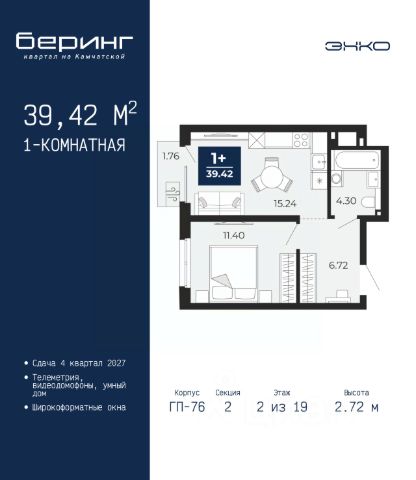 Квартира располагается в ГК "Чистые Пруды" от "Паритет девелопмент". Это флагманский проект компании в Тюмени. Расположение вдали от шумных улиц и оживленного центра создает ощущение жизни на природе и окружает тишиной и спокойствием. Есть вся необходимая социальная и коммерческая инфраструктура: магазины и сфера услуг на первых этажах. Школы, сады, поликлиника, парки в шаговой доступности. Квартал строится в районе Новой Лесобазы. Рядом выезд на объездную, что существенно экономит время. Поездка до центра города на автомобиле занимает 15-20 минут. Городские кварталы "Чистые Пруды" сформирован из домов переменной этажности и многоуровневых паркингов. Ввод 1 очереди строительства запланирован на II кв. 2028 года. Всё благоустройство квартала представлено двумя функциональными зонами: приватная внутри дворовая и общественная. Каждый закрытый двор имеет выход на единую променадную зону - бульвар. Концепция благоустройства основана на принципе модульности, что формирует основную идею приватности. Приватность проекта подчеркивает его особенный климат внутри. Модульное благоустройство позволит максимально эффективно использовать пространство двора и удовлетворить потребности различных категорий жителей. В квартирах базово выполнена улучшенная черновая отделка, которая включает в себя: выровненные стены, стяжка пола с шумоизоляцией, горизонтальная разводка отопления, установлены счетчики с телеметрией, окна с 5-камерным профилем и надежные входные двери. При желании можно добавить ремонт от застройщика и включить его в стоимость ипотеки, что позволит сэкономить на стройматериалах и переехать сразу после получения ключей. Характеристики квартиры: этаж - 15 количество комнат - 1 номер помещения - 416 площадь квартиры - 28,4 кв.мГармоничные пропорции и большие окна наполняют пространство светом, создавая уютную атмосферу. Умное зонирование позволяет удобно организовать как рабочую, так и жилую зоны, что особенно важно для современных жителей. Санузел спроектирован с учетом всех потребностей: здесь есть ванна и место для стиральной машины. Каждый метр квартиры используется с максимальной эффективностью, что делает эту планировку отличным выбором для тех, кто ценит комфорт и удобство.