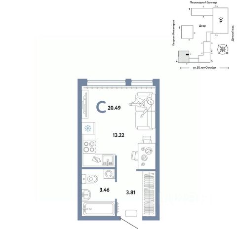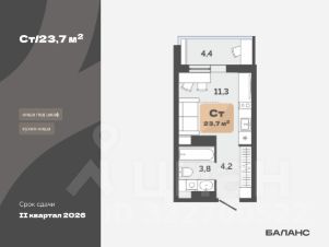 Просторная однокомнатная квартира-студия с предчистовой отделкой в ЖК "Мириады" на 15 этаже. Общая площадь: 27.2 кв.м., площадь гостиной 19.2 кв.м., из которых 5 кв.м. выделено под кухонную зону. Все окна выходят на одну сторону. В квартире один балкон, один совмещенный санузел. Высота потолков 2.7 м. Дом монолитный, трехподъездный, переменной этажности, от 14 до 16 этажей. Квартира находится во 2-й секции высотой 16 этажей в корпусе ГП-72.103. На этаже 6 квартир. В подъезде 1 пассажирский и 1 грузовой лифт. Окончание строительства - 4 квартал 2025 года. Оформление сделки по договору долевого участия. Вселенная бесконечных историй. Ранее невиданный Тюмени масштаб: территория 240 гектаров и 1 650 000 м² застройки. Мириады это город масштабных перемен и больших возможностей. Город зеленых рощ и зеркальных озер. Город для работы, учебы и развлечений. Город для детей и их родителей. Город для всех и каждого. Проект расположен в районе Мыс рядом с ТРЦ "Тюмень Сити Молл" в границах улицы Тимофея Чаркова, Тобольского тракта и объездной дороги. Срок полного освоения территории - до 2034 года. #249Dum