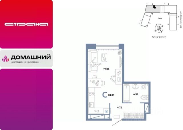 Состоит из четырёх домов высотой 1020 этажей — стильный, продуманный и комфортный.