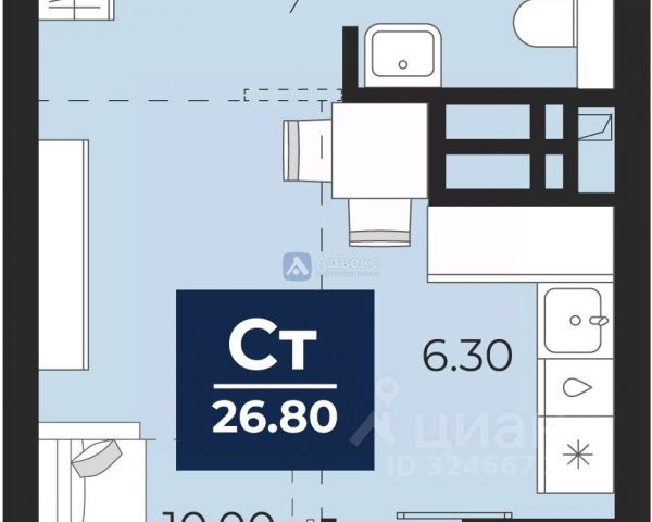 Продаётся просторная и очень уютная студия 28 м² с ремонтом, мебелью и техникой заходи и живи!