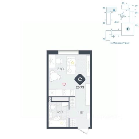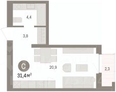 1-комн. квартира-студия от застройщика с предчистовой отделкой в ЖК "Прео" на 15 этаже. Общая площадь: 32.77 кв.м., площадь гостиной 21.92 кв.м., из которых 10 кв.м. выделено под кухонную зону. Все окна выходят на одну сторону. В квартире один совмещенный санузел. Высота потолков 2.7 м.