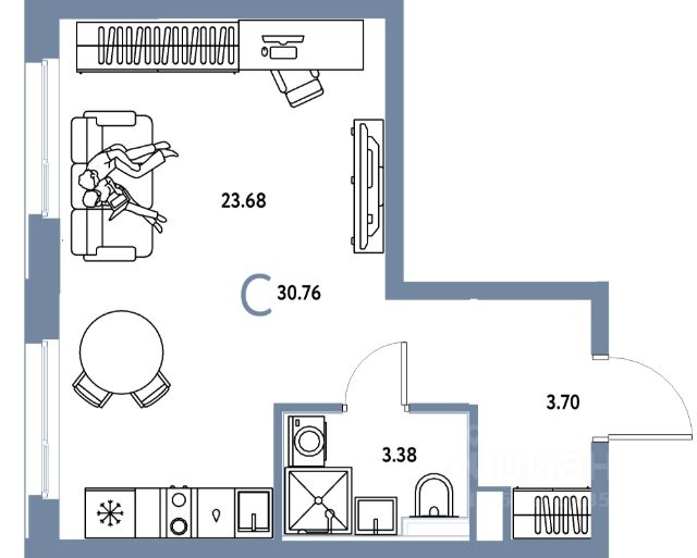Продается 2-комн. квартира с предчистовой отделкой в ЖК "Республики 205" на 6 этаже. Общая площадь: 76.86 кв.м., жилая: 30.9 кв.м., площадь просторной кухни-гостиной: 28.2 кв.м. Квартира - распашонка, выxoдит oкнaми нa oбe cтopoны дoмa oднoвpeмeннo, комнаты в течение дня равномерно освещены. В квартире одна лоджия, два совмещенных санузла. Высота потолков 2.6 м.